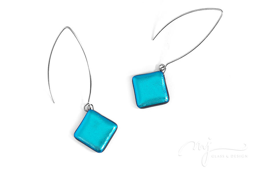 Csodálatos árnyalatú türkizkék üveget olvasztottam fülbevalónak. Felülete azúrkékben és királykékben is irizál.