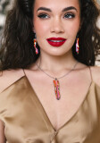 FLAMENCO - hullámos felületű, cirmos mintázatú tűzpiros - pink nyaklánc