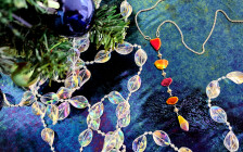 A nyakék további különlegessége, hogy "hátoldala" is színes...ha megfordulna a dekoltázson az ékszer, akkor egy újabb irizáló arcát mutatja meg a szemlélőnek.