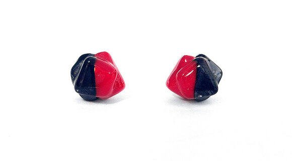 PÖTTY - antracitfekete-piros pont fülbevaló