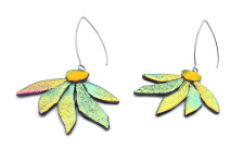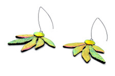 CARNABELLA – citromsárga-lime-pávazöld színű virágos lógós fülbevaló