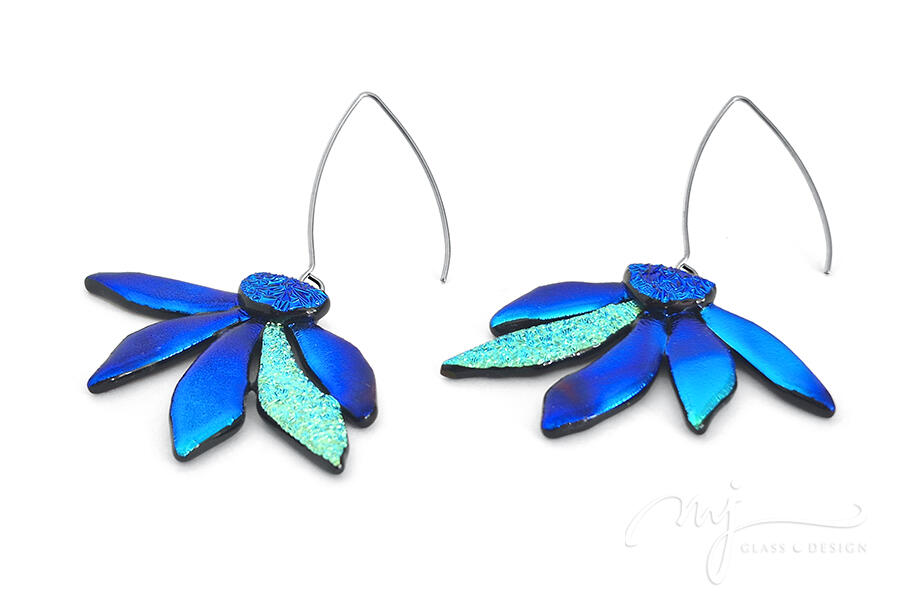 CARNABELLA – cirmos kék, türkiz és rusztikus királykék színű virágos lógós fülbevaló
