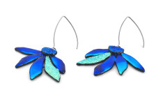 CARNABELLA – cirmos ezüstös jégkék, királykék és pinkes kék színű virágos lógós fülbevaló