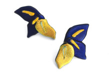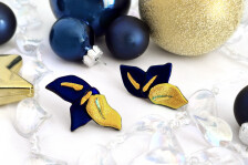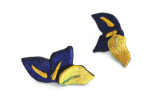 Matt hatású, sötét éjkék és gyönyörű, türkizzöldben irizáló, rusztikus felületű arany színt felhasználva olvasztottam virág-kompozícióvá ezt a csodás fülbevalót. Az aranyos rész finom csillogásának és a színek játékának köszönhetően alkalmi és hétköznapi ékszerként is ragyogtathatja stílusod.