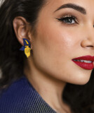 CARNABELLA – királykék-citromsárga virágos bedugós fülbevaló
