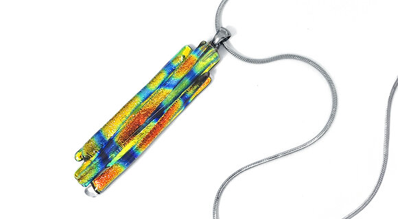 A fusing technikával készült üvegmedálok, nyakláncok és fülbevalók különlegessége magában az alapanyagban rejlik. Az irizáló, szikrázó felületüket a rajtuk lévő fém-oxid rétegnek köszönhetik, ez az, amitől az üvegékszer többarcú lesz. Más-más szögből vagy más fényben nézve különböző színárnyalatokban játszik. Az egyedi üvegékszer sosem lesz unalmas: akárhányszor előveszed, hogy ékesítsd vele magad, mindig rácsodálkozhatsz egy újabb megjelenésére.