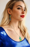 ÉCLAT - cirmos sárga-királykék-türkiz lógós fülbevaló