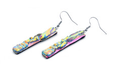 ÉCLAT - hullámos felületű, pink és szivárványszínű lógós fülbevaló