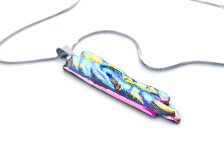 Az üvegmedált karcsú, hosszított alakzatra olvasztottam, amit egy 43 cm hosszú, orvosi fém kígyóláncra fűztem fel. A hozzácsatolt hosszabbítólánc hossza kb. 4 cm.