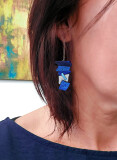 EKLEKTIKA - lapolt rusztikus felületű kék-ezüst lógós fülbevaló