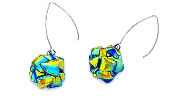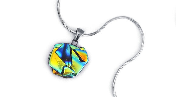 A fusing technikával készült üvegmedálok, nyakláncok és fülbevalók különlegessége magában az alapanyagban rejlik. Az irizáló, szikrázó felületüket a rajtuk lévő fém-oxid rétegnek köszönhetik, ez az, amitől az üvegékszer többarcú lesz. Más-más szögből vagy más fényben nézve különböző színárnyalatokban játszik. Az egyedi üvegékszer sosem lesz unalmas: akárhányszor előveszed, hogy ékesítsd vele magad, mindig rácsodálkozhatsz egy újabb megjelenésére.