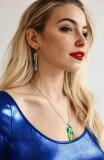 FLAMENCO - cirmos sárga-királykék-türkiz lógós fülbevaló