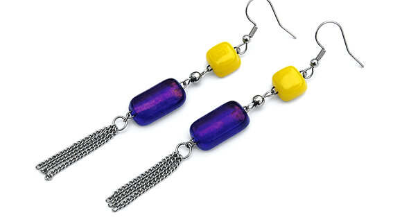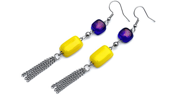 BOHEMIAN - indigókék-citromsárga lógós fülbevaló