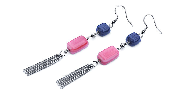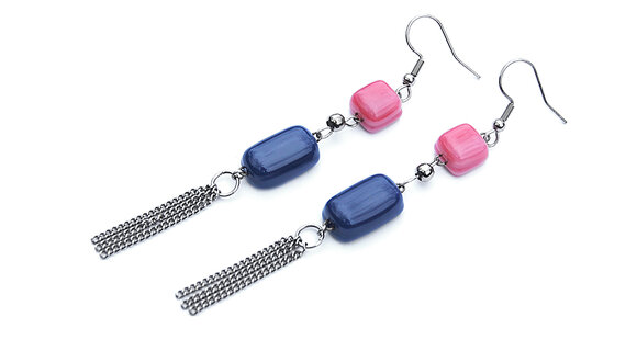 BOHEMIAN - kobaltkék-rózsaszín lógós fülbevaló