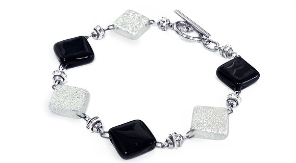 EKLEKTIKA - négyzetes fekete-ezüst karkötő