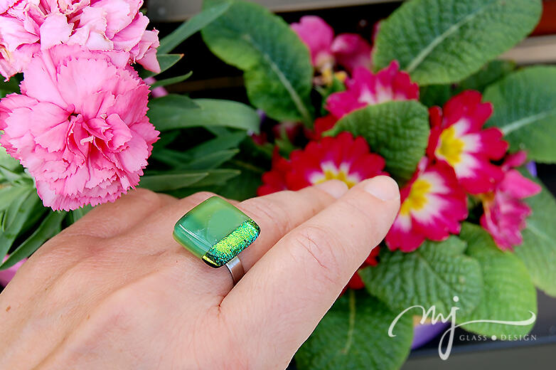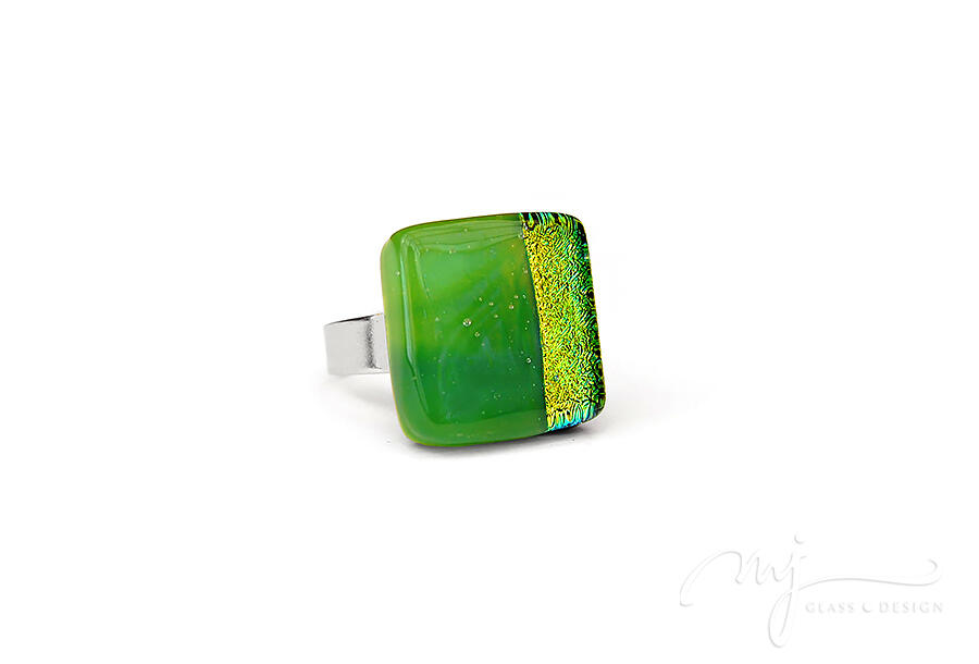 Az üveg nemesacél (orvosi fém) ékszeralapra lett helyezve, így a gyűrűt egész nap, kellemetlenségek nélkül tudod viselni. Fém része állítható, amit könnyedén az ujj méretére tudsz igazítani.