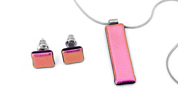 A fusing technikával készült üvegmedálok, nyakláncok és fülbevalók különlegessége magában az alapanyagban rejlik. Az irizáló, szikrázó felületüket a rajtuk lévő fém-oxid rétegnek köszönhetik, ez az, amitől az üvegékszer többarcú lesz. Más-más szögből vagy más fényben nézve különböző színárnyalatokban játszik. Az egyedi üvegékszer sosem lesz unalmas: akárhányszor előveszed, hogy ékesítsd vele magad, mindig rácsodálkozhatsz egy újabb megjelenésére.