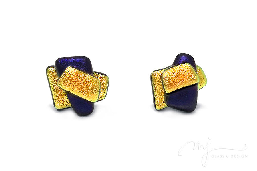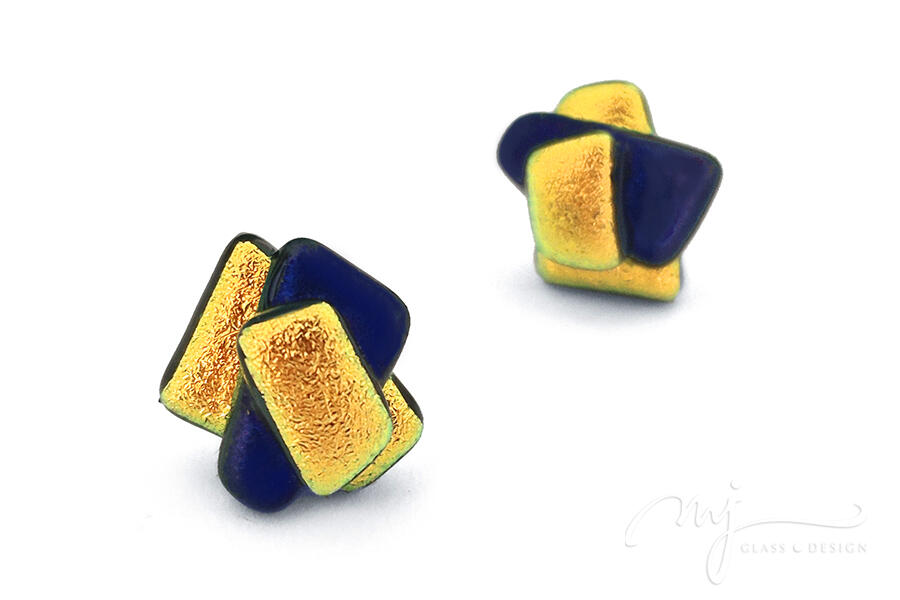 PÖTTY - lapolt, éjkék-arany-éjkék bedugós fülbevaló