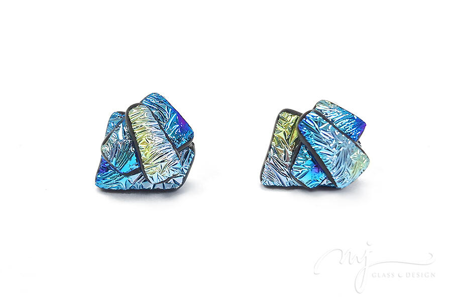 Fényesen csillogó, különböző formájú üvegelemekből építettem fel ezt a csodás bedugós fülbevalót, amelyben az enyhén rusztikus felületű türkizkék, a pezsgő és az ezüst színű üvegmozaikok olvadnak egy egésszé. Méreténél fogva nem hangsúlyos darab, annál inkább a színeit tekintve. Tekinteteket vonzó ékszer született!