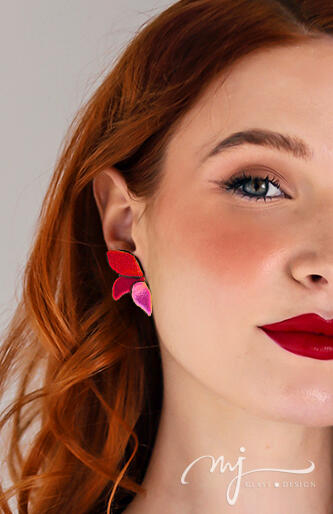 VOLARE - rusztikus piros-bíbor-pink pillangós bedugós fülbevaló